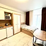 Apart Hotel In A Complex Semycvit lägenhet erbjuder en kokvrå samt rum med te/kaffebryggare, TV och plattskärms-TV med satellitkanaler. Lvivs polytekniska universitet ligger 2 km från lägenheten, och Lviv Danylo Halytskyi internationella flygplats är belägen 15 minuters bilfärd bort.